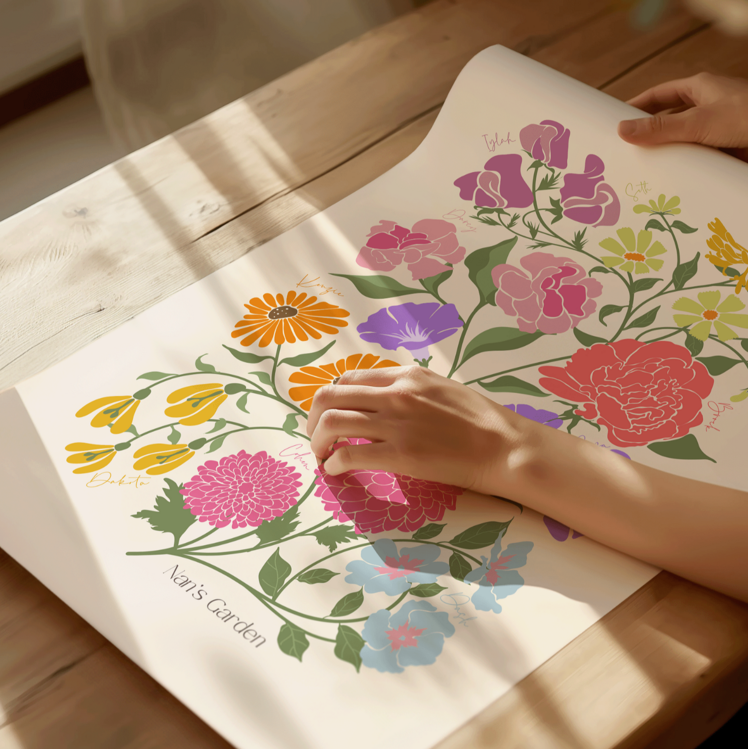 Personalise your custom poster even more by adding in a family name, or a sweet name for like "Nanna's Garden".