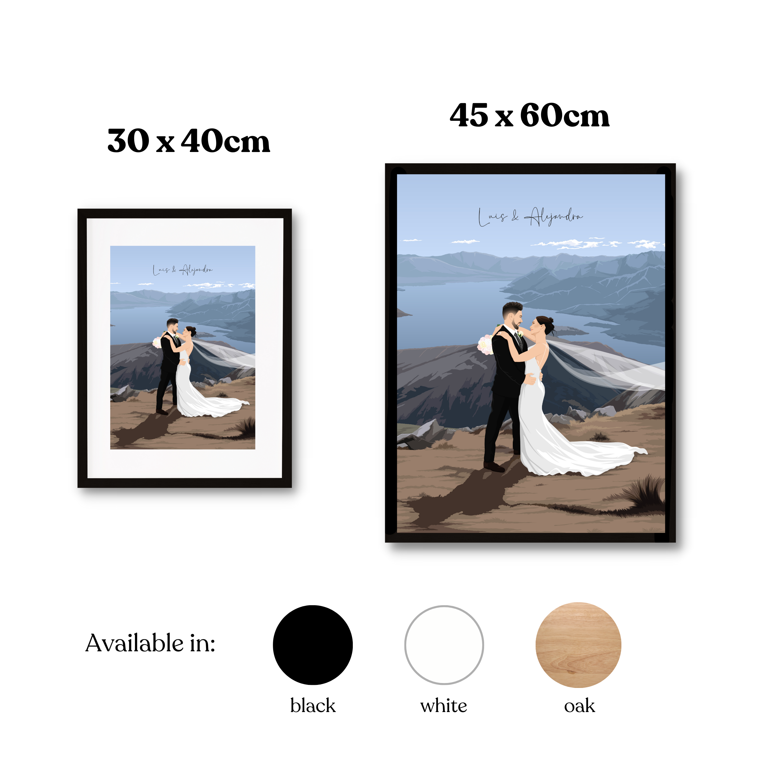 Perfect for your partner, a newlywed couple, or as a surprise anniversary gift, this personalised illustration captures the magic of your special day. Add your names and the date your journey began to create a timeless keepsake that speaks straight to the heart — you'll want to put it up on your wall straight away 🖤