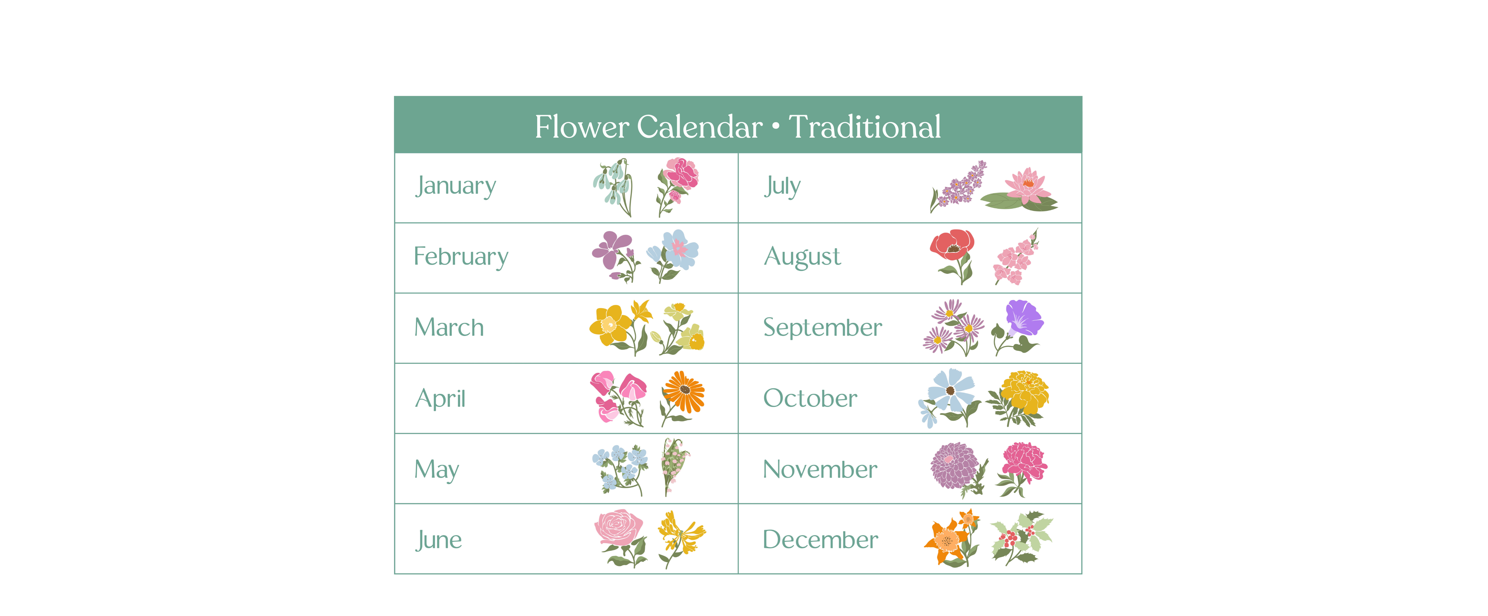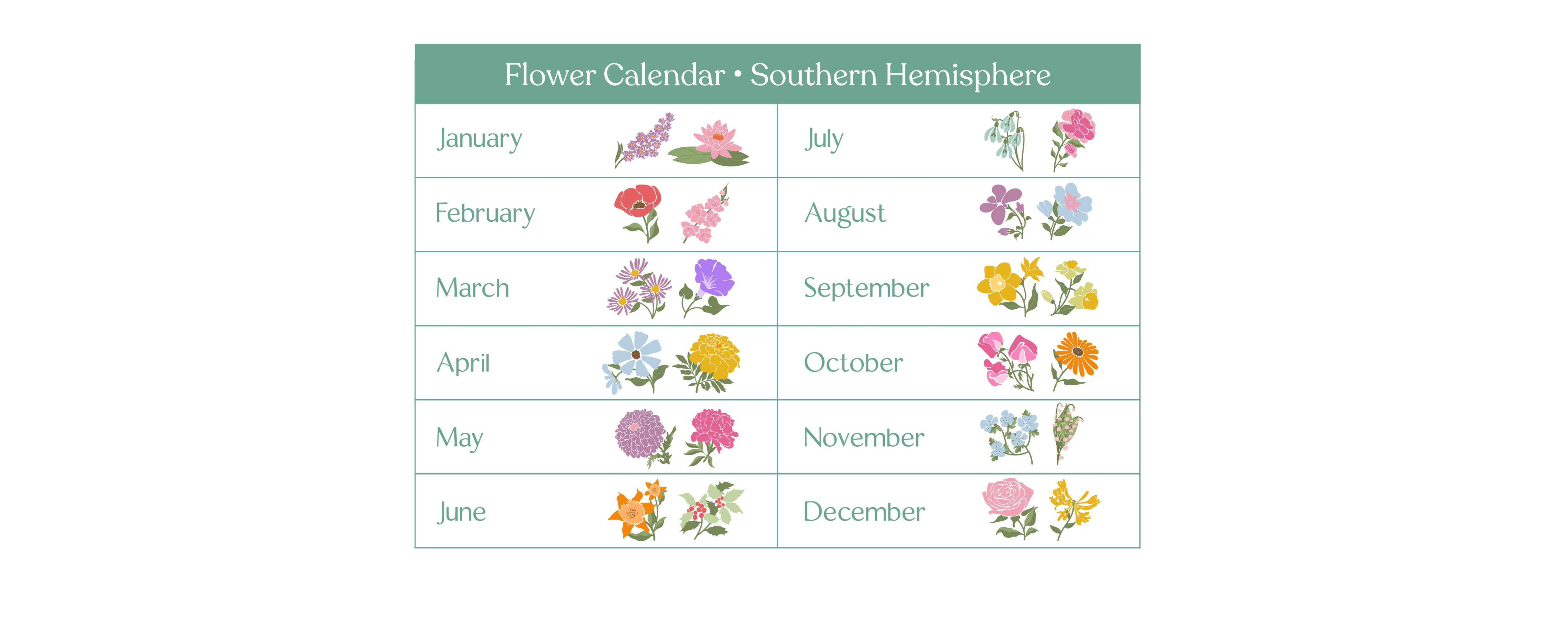 Select your preferred flowers (traditional or southern hemisphere), so we can accurately match the flowers to the months they bloom in your region.